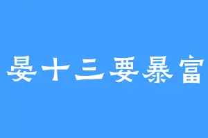 晏十三要暴富